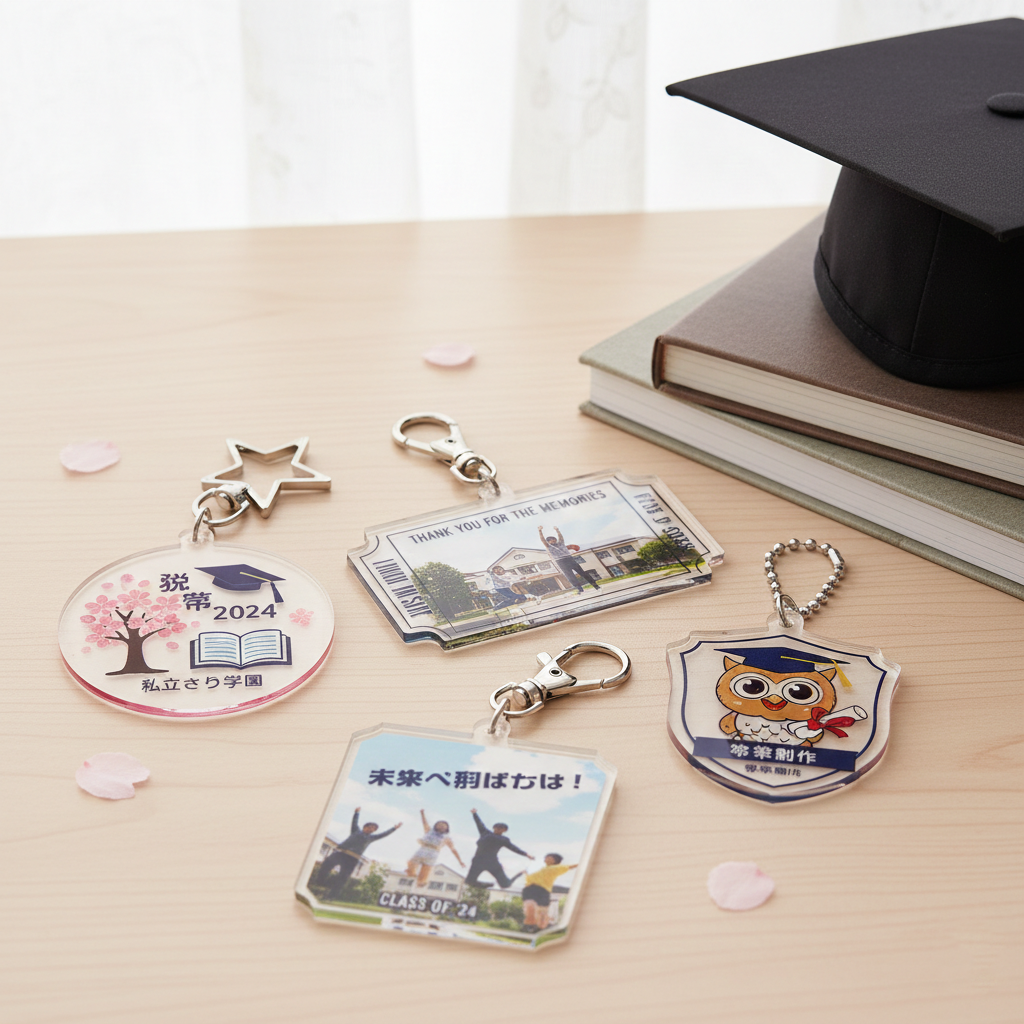 アクリルキーホルダー(通称:アクキー)は、気軽に作れて、プレゼントや物販にもぴったりな人気アイテムです。